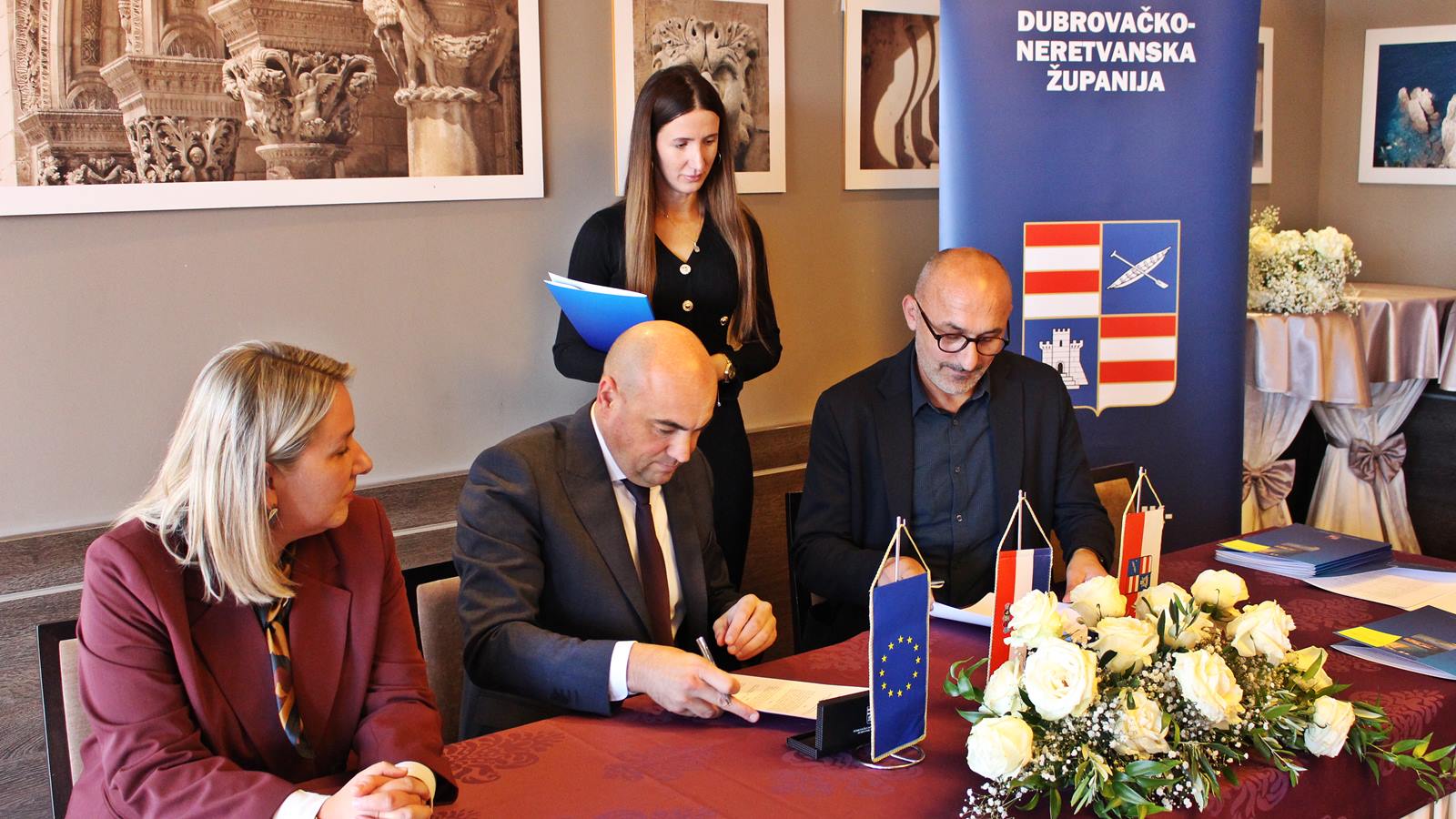 Župan dubrovačko-neretvanski Blaž Pezo potpisao je danas prve ugovore iz Javnog poziva za dodjelu potpora male vrijednosti u poljoprivredi Dubrovačko-neretvanske županije u 2025. godini s korisnicima.