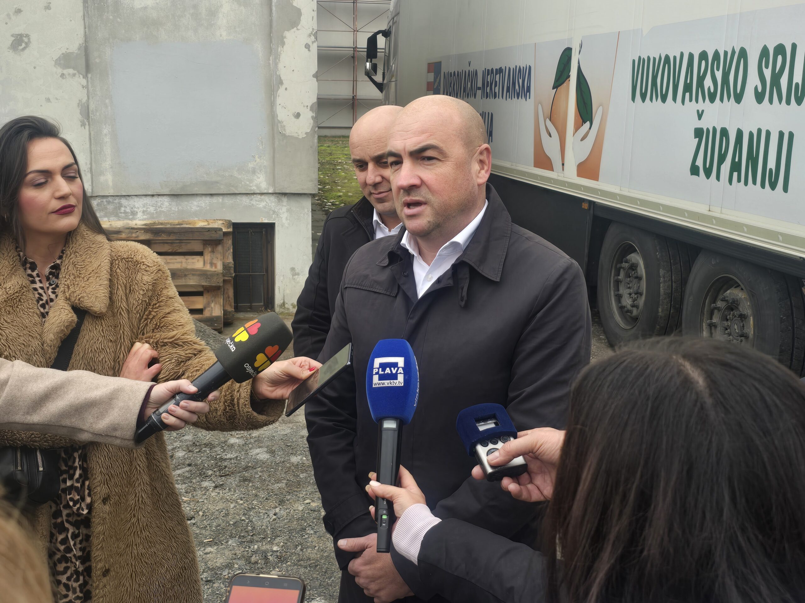Dubrovačko-neretvanski župan Blaž Pezo, zajedno s pročelnicom Žaklinom Marević, uručio je u Vukovaru donaciju od deset tona mandarina vukovarsko-srijemskom županu Ivanu Bosančiću.
