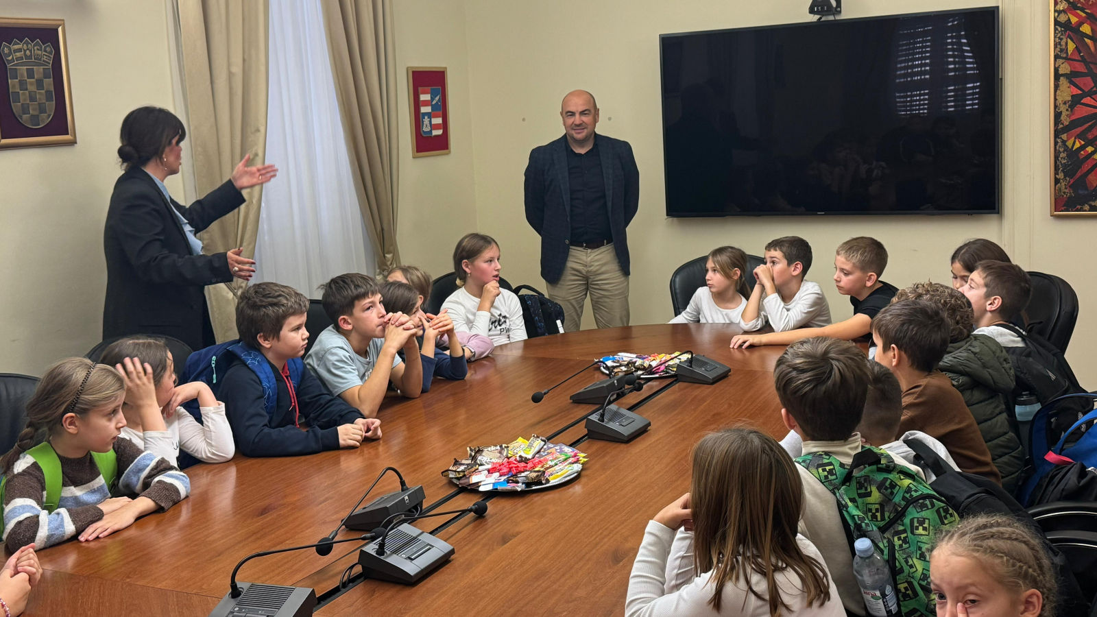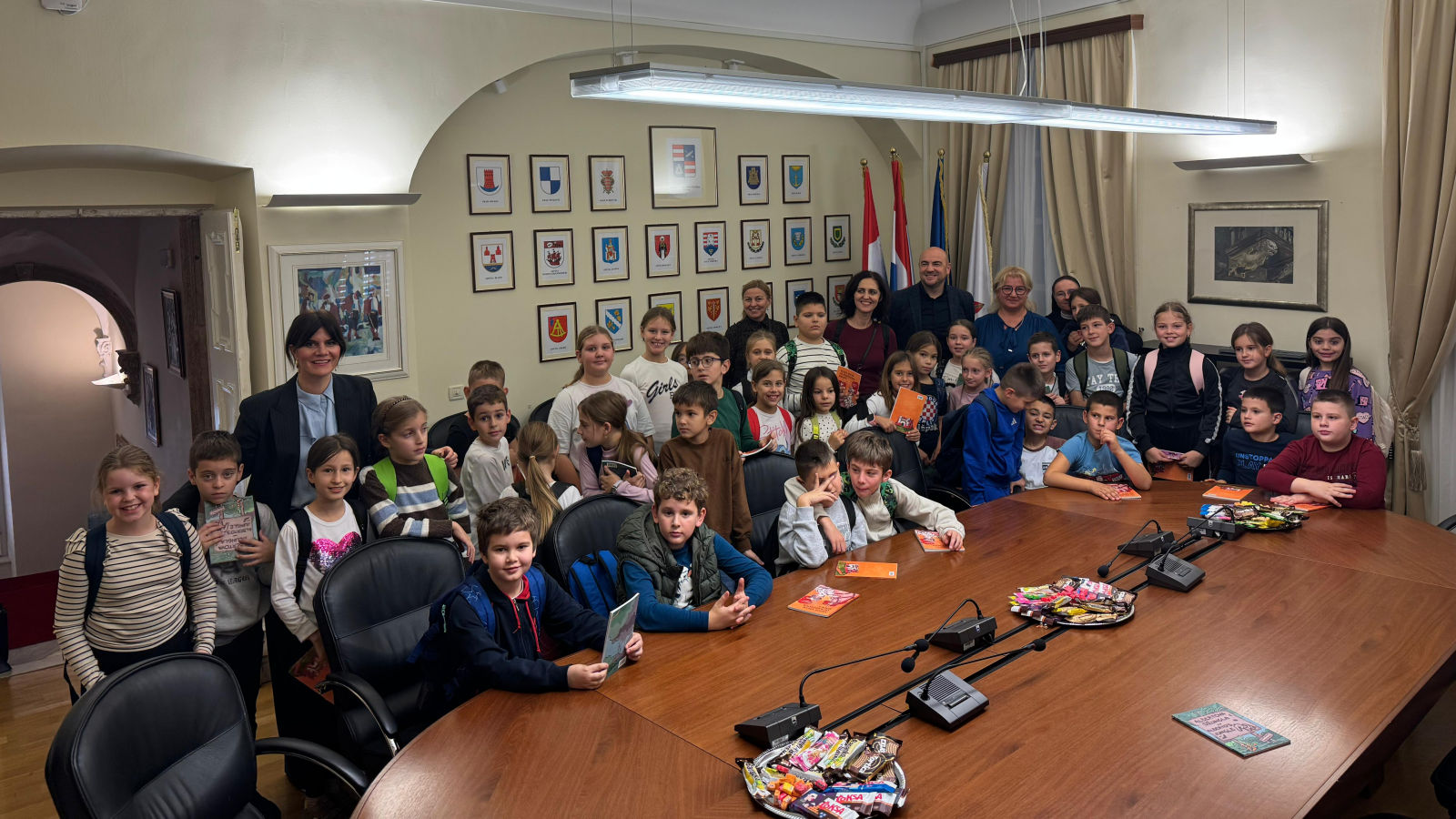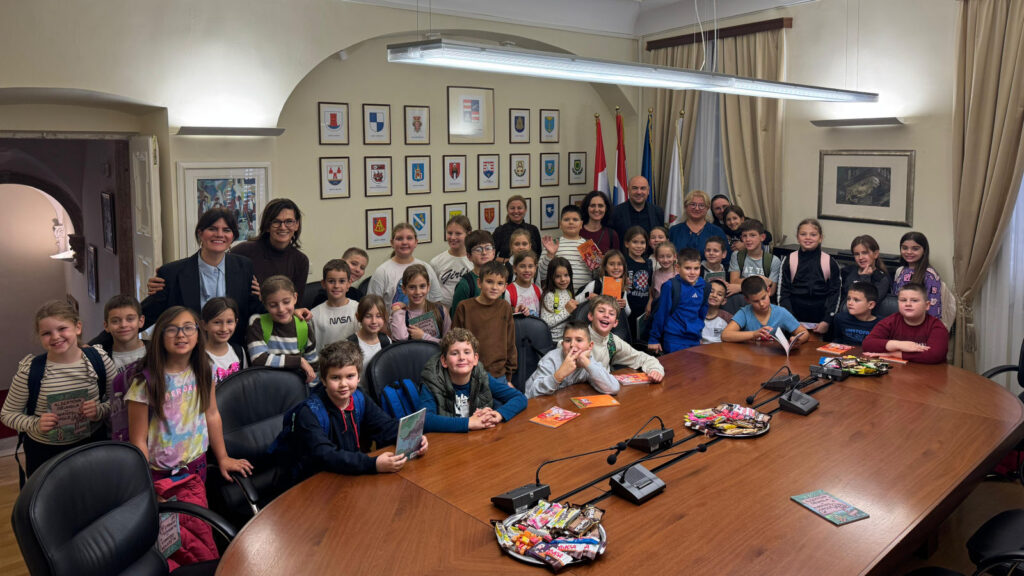 Župan dubrovačko-neretvanski Blaž Pezo sa pročelnicom Upravnog odjela za obrazovanje, kulturu i sport Jelenom Dadić Račić i pročelnicom UO za poslove Župana i Županijske skupštine Žaklinom Marević primio je u Palači Ranjina učenike dvaju odjeljenja 3. razreda Osnovne škole Stjepana Radića iz Metkovića i njihove učiteljice.