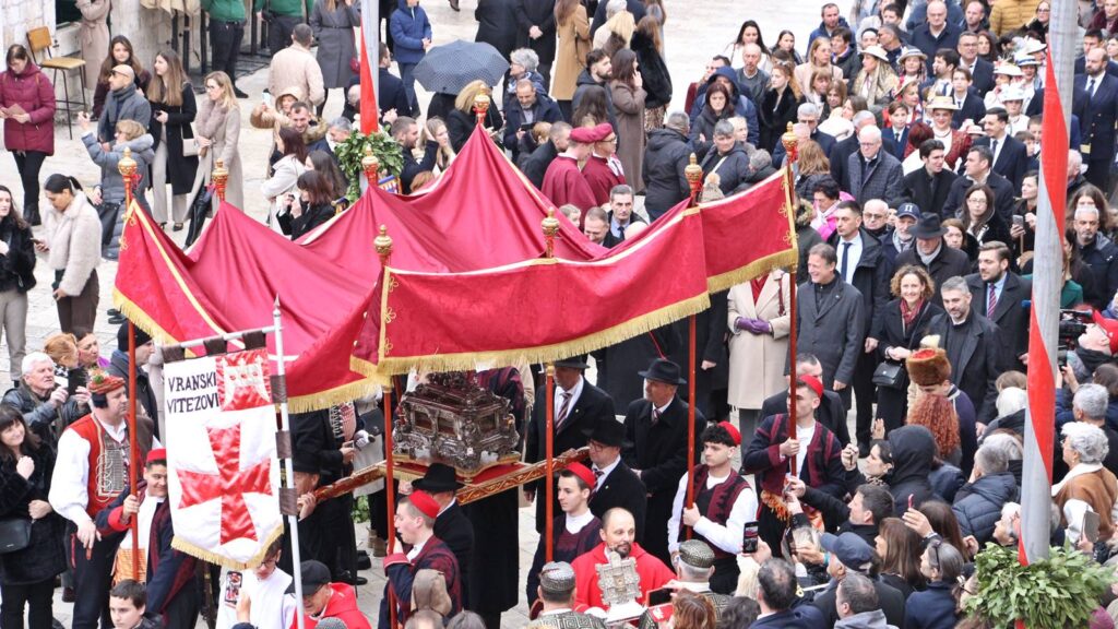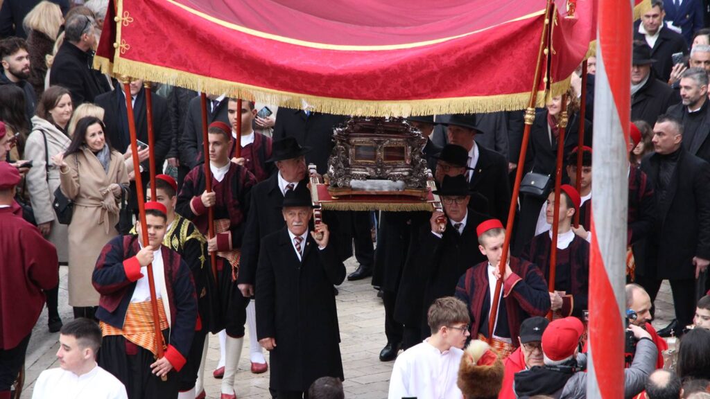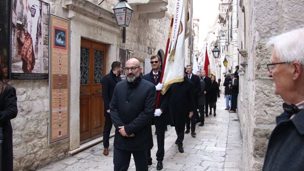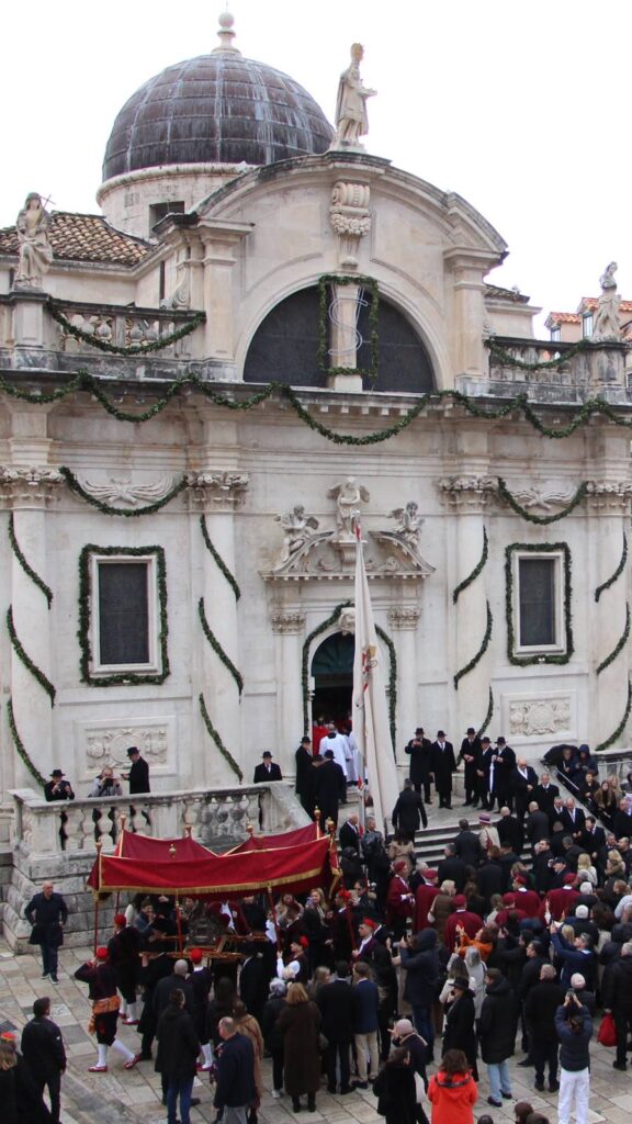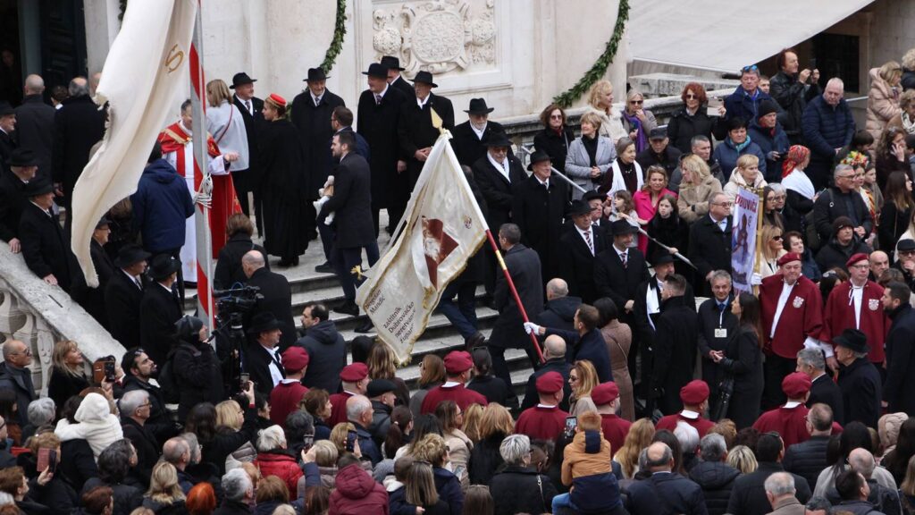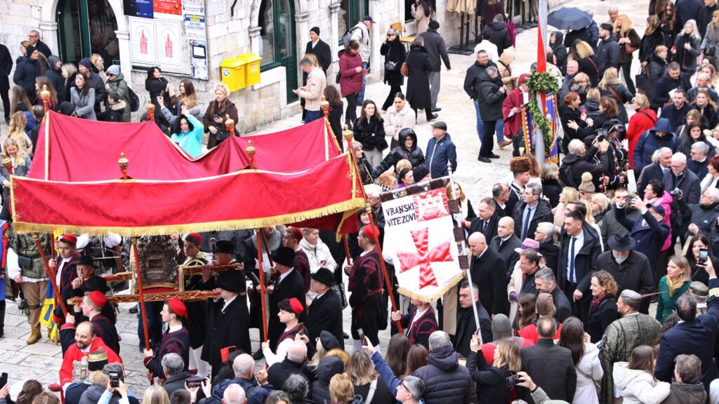 Nakon svete mise ispred Katedrale, uslijedila je procesija barjaka i svečevih moći Ulicom od Puča i Stradunom do crkve svetog Vlaha.
