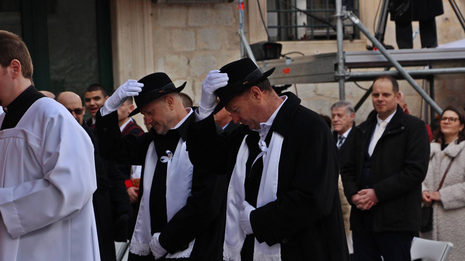 Župan dubrovačko-neretvanski Blaž Pezo sa zamjenikom Joškom Cebalom i predsjednikom Županijske skupštine Nikolom Dobroslavićem te pročelnicama/cima upravnih odjela i drugim suradnicima sudjelovao je na proslavi 1054. Feste svetog Vlaha.