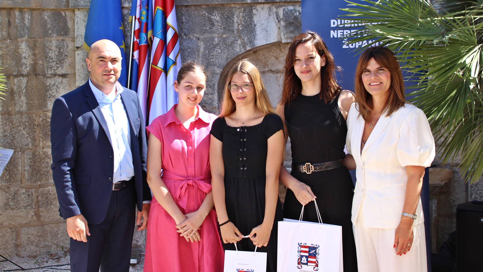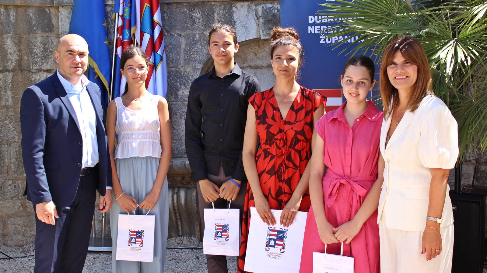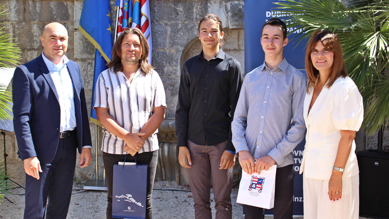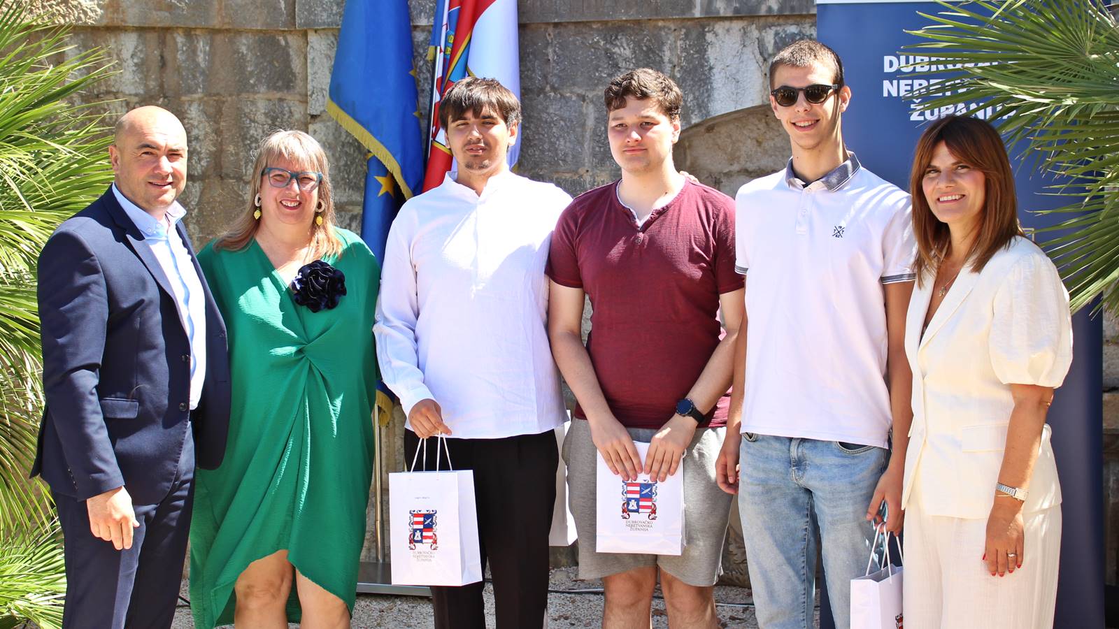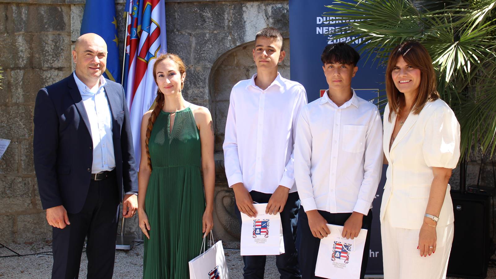 Župan Blaž Pezo i pročelnica Upravnog odjela za obrazovanje, kulturu i sport Jelena Dadić Račić uručili su, na prigodnoj svečanosti u Vili Čingrija u Dubrovniku, nagrade učenicima i mentorima koji su osvojili jedno od prva tri mjesta na državnim natjecanjima iz znanja i sporta.