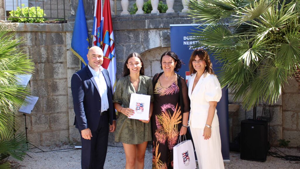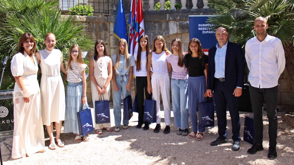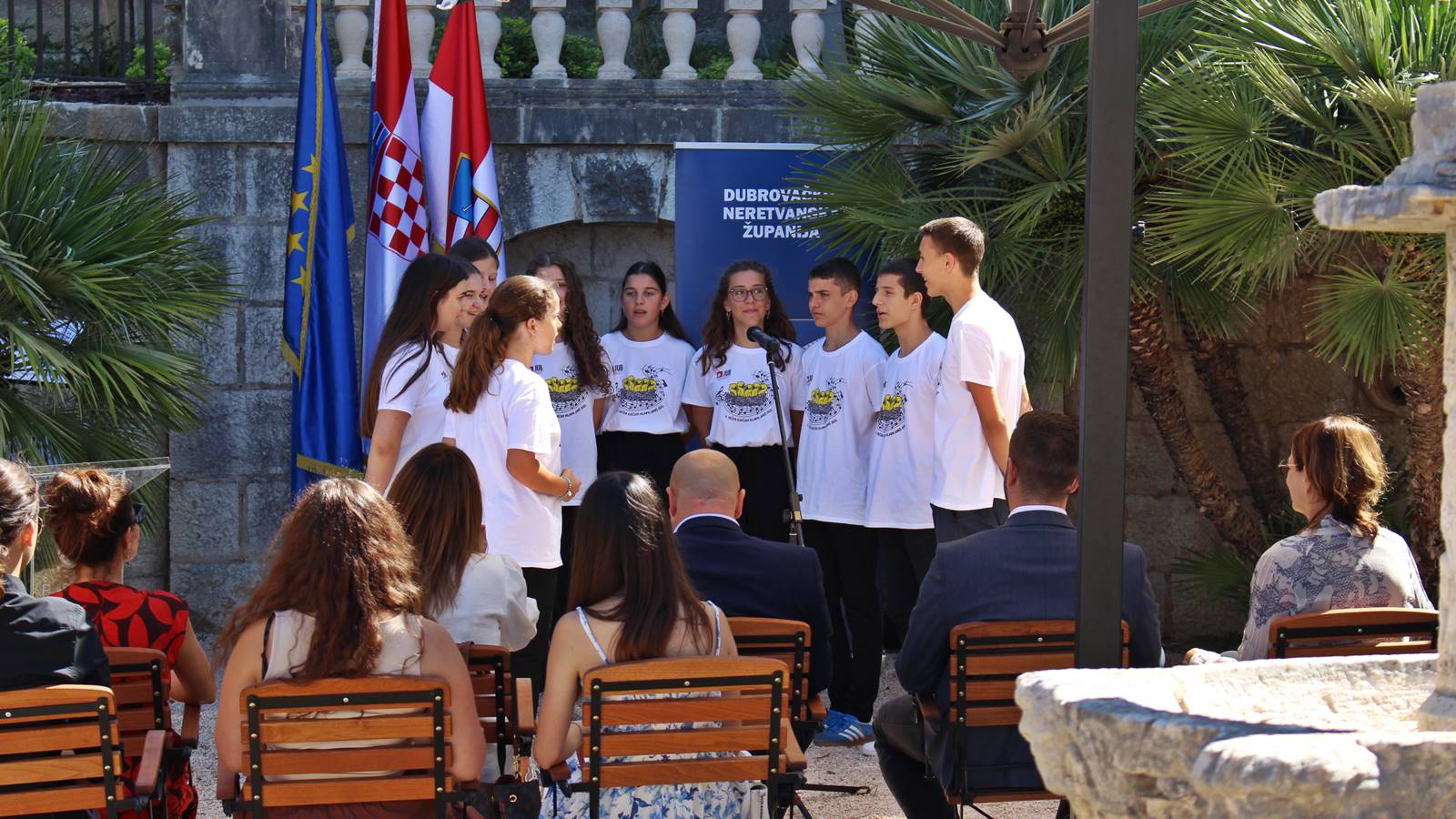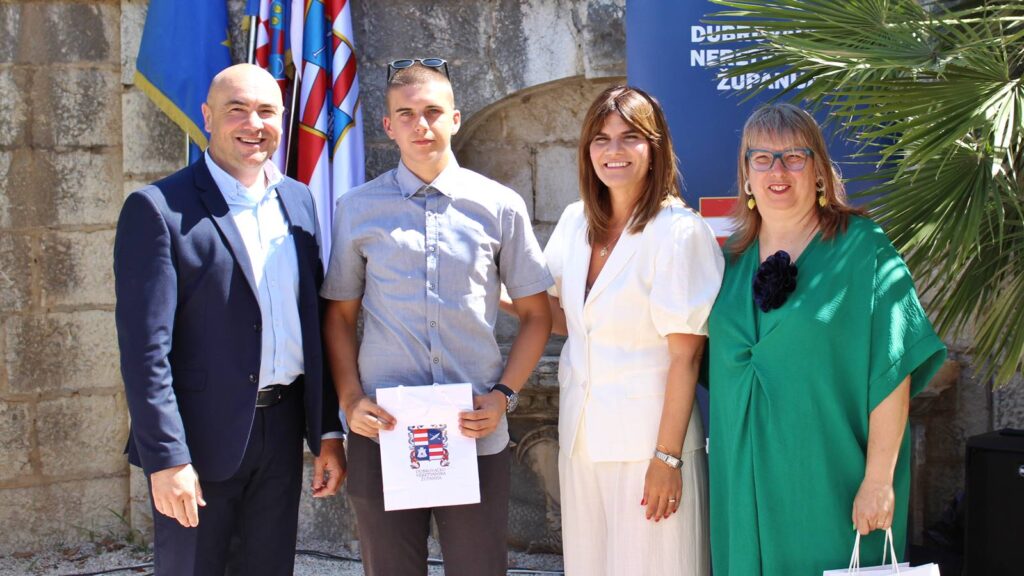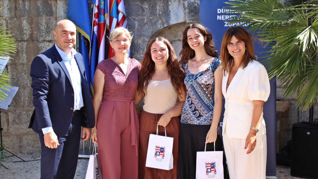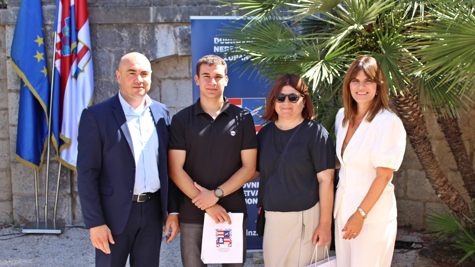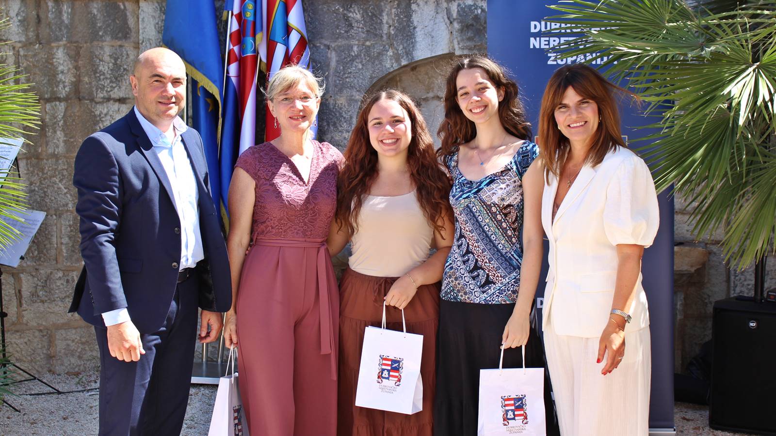 Župan Blaž Pezo i pročelnica Upravnog odjela za obrazovanje, kulturu i sport Jelena Dadić Račić uručili su, na prigodnoj svečanosti u Vili Čingrija u Dubrovniku, nagrade učenicima i mentorima koji su osvojili jedno od prva tri mjesta na državnim natjecanjima iz znanja i sporta.